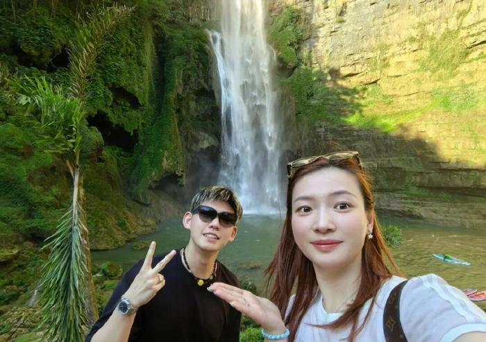 七夕情人节,两人到贵州旅游,卿卿我我的状态羡煞旁人。“开开心心,有情人终成眷属!”,从黄雅琼七夕节配图发的这句话,能看出她婚后生活的甜蜜幸福。